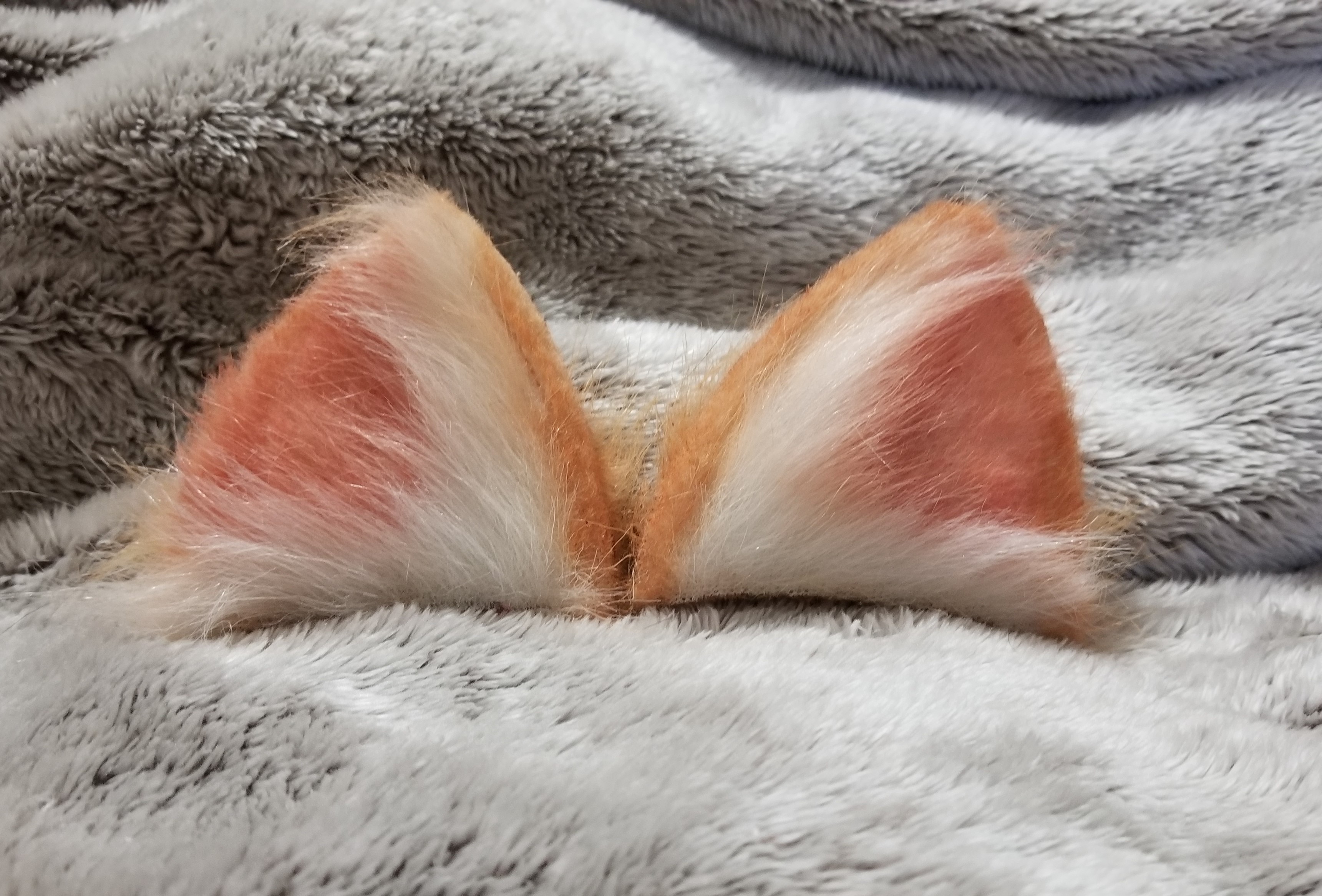 Large Blonde Cat ears to mimic the Siamese cat breed that has the lighter more golden fur. Is fully wired and has a headband attachment.