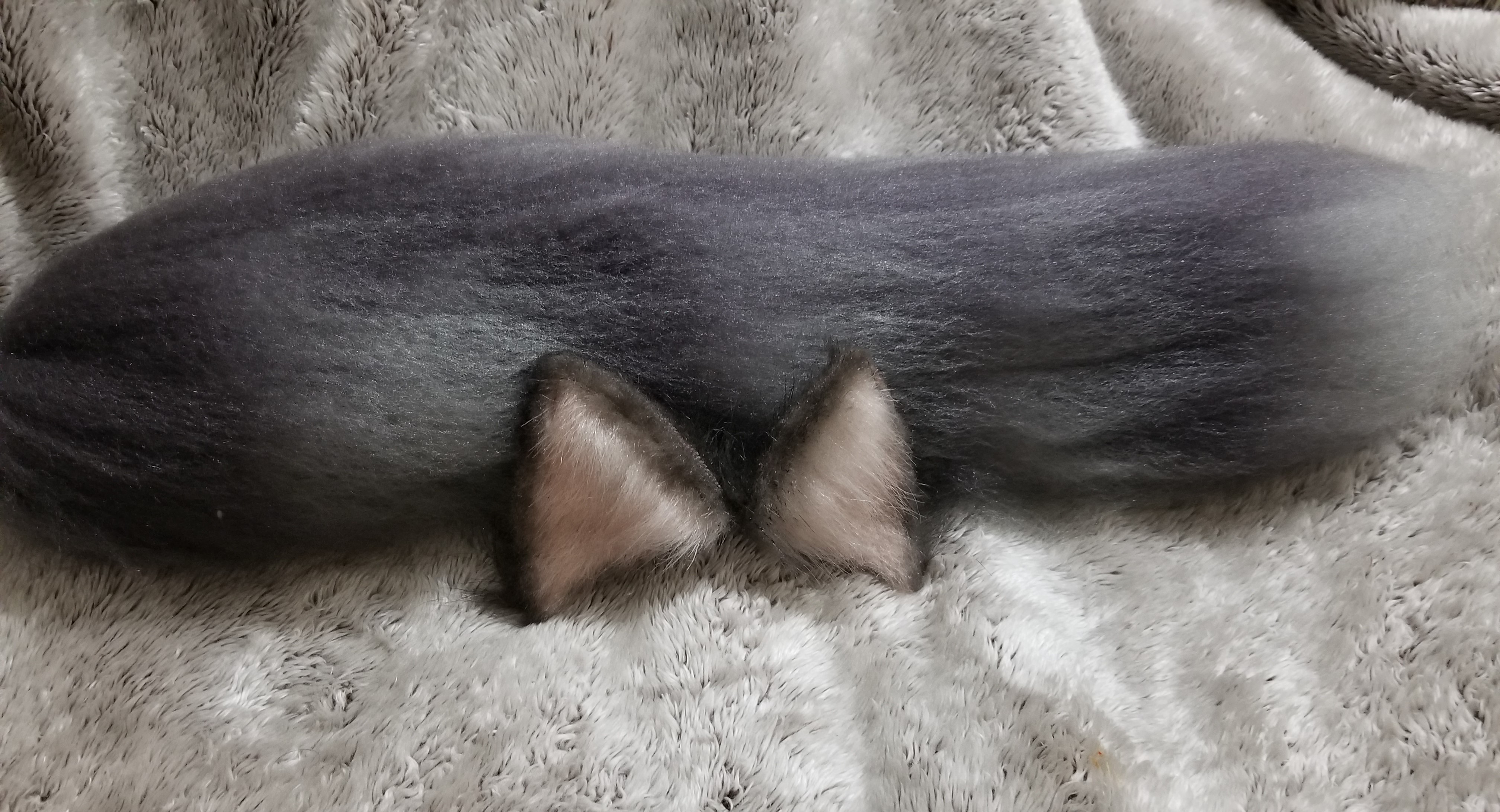 19" Grey Tabby Kitten tail with matching Grey Tabby Kitten ears with airbrushing and headband attachment. Are only wired along the bottom.