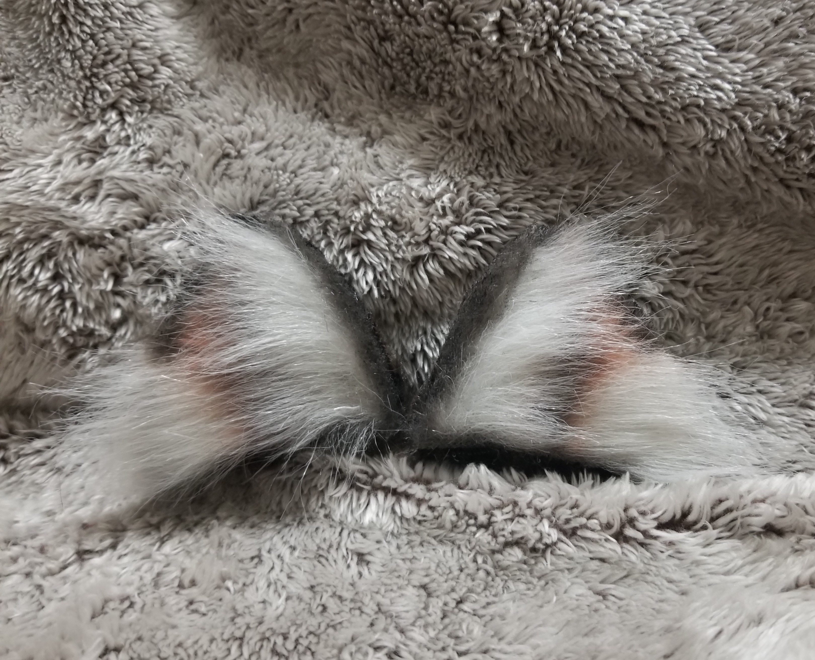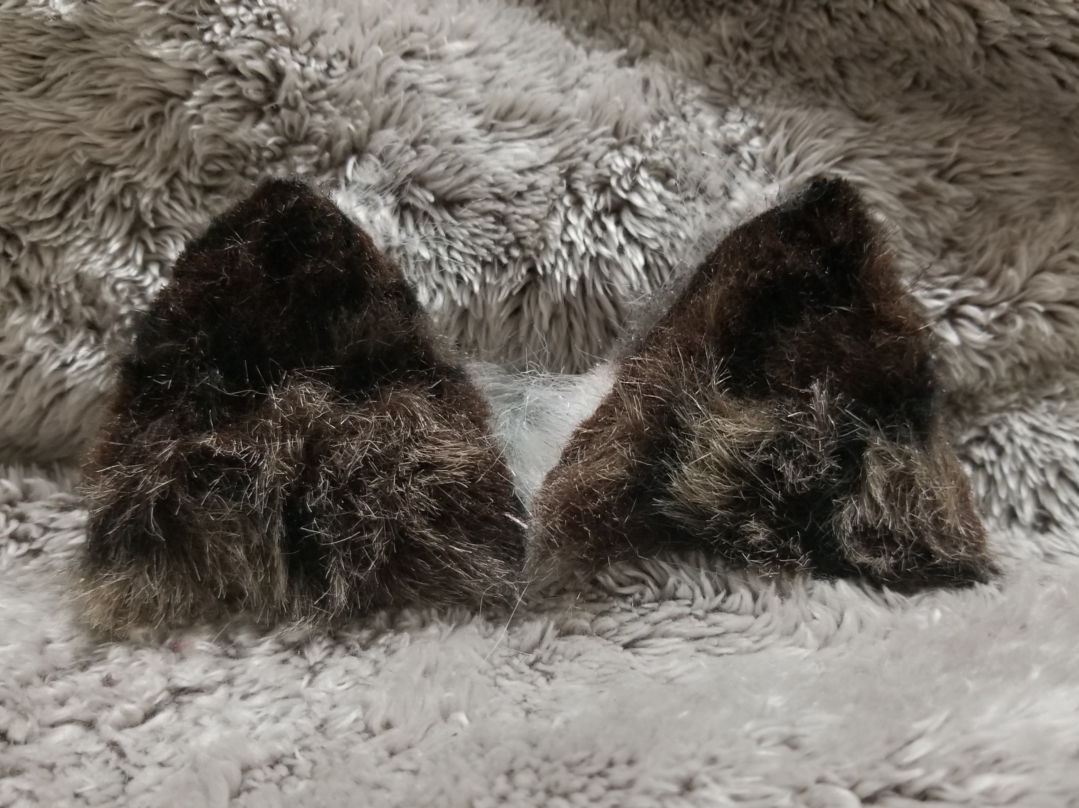 Snow Leopard kitten ears with airbrushing only on the front, are only wired along the bottom of the ear for the headband attachment.